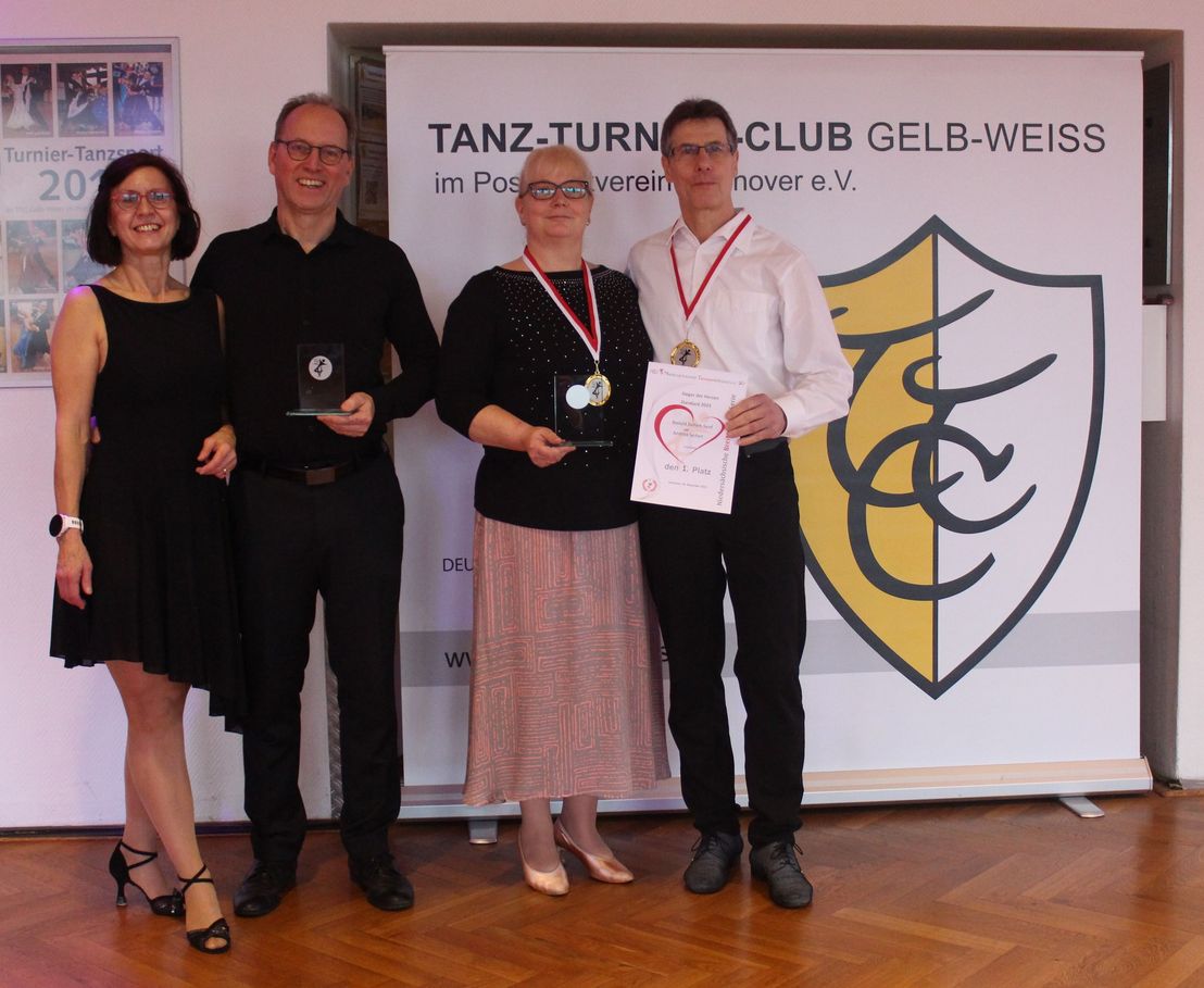 Und dann stand noch die letzte Siegerehrung des Tages an: die Sieger der Herzen. Als "Sieger der Herzen" (neben der Urkunde gab es hierfür auch einen Pokal), wird das Paar ausgezeichnet, welches das beste Ergebnis unter besonderer Berücksichtigung des Alters ertanzt hat.