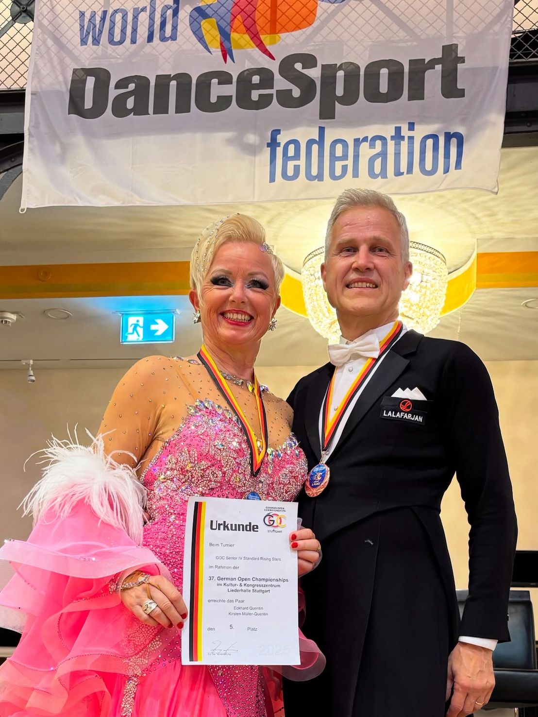 Fünf Tage, drei Säle, 640 Helfer und Helferinnen, 62 Einzelwettbewerbe mit insgesamt rund 3500 Starts, reichlich Finalteilnahmen mit 27 Medaillen für Tanzsport Deutschland, so liessen sich die 37. German Open Championships in Stuttgart in wenigen Zahlen zusammenfassen. Diese nüchterne Aufzählung wird jedoch der Stimmung und der Atmosphäre des alljährlich stattfindenden Tanzsportspektakels in keiner Weise gerecht.