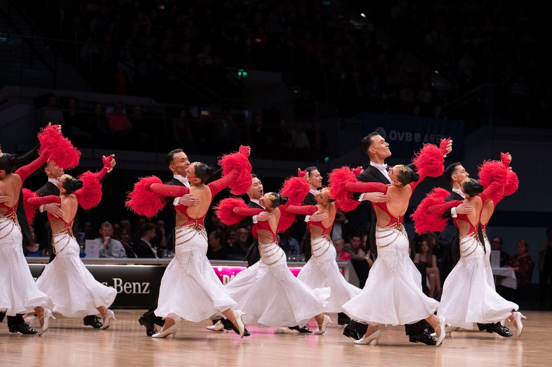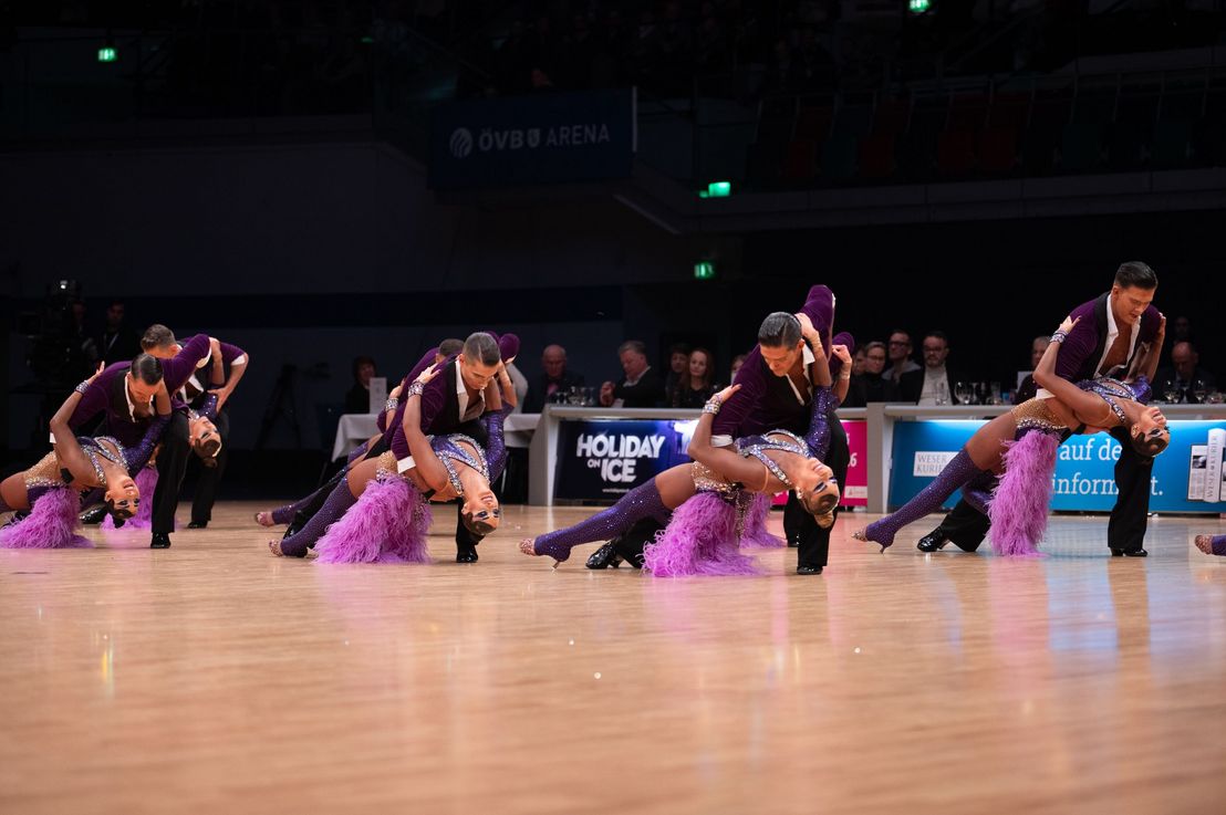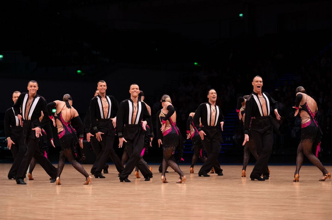 In gewohnt geschachtelter Form tanzten auch die acht qualifizierten Mannschaften der Lateinsektion um den deutschen Meistertitel. Und auch wenn der Grün-Gold-Club in gewisser Weise seine ganz eigene Liga bildet und viele Alleinstellungsmerkmale für sich hat, hat das A-Team von Blau-Weiss Buchholz bereits ab der Vorrunde ein fantastisches Turnier getanzt. Mit einer unglaublich abwechslungsreichen und überraschenden Choreografie zeigte die Mannschaft tänzerische Klasse auf internationalem Niveau. Der Titel des Deutschen Vizemeisters und die Qualifikation für die Weltmeisterschaft krönten diese Leistung. Das überraschende Team der Lateinsektion war eindeutig der Aufsteiger vom TSC Walsrode. Mit einem beeindruckend stimmigen Gesamtprogramm und einer anspruchsvollen Choreografie überzeugte das A-Team schon in der Vorrunde und erreichte verdient die Zwischenrunde. Hier belegte die Mannschaft den sechsten Rang.