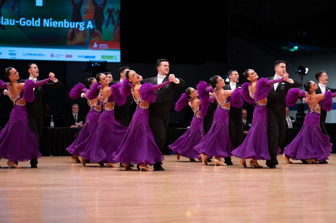 Den Anfang der jeweiligen Runden machten die Standardteams. Bereits in der Vorrunde zeichnete sich ein Kopf-an-Kopf-Rennen zwischen dem A-Team vom 1. TC Ludwigsburg und dem A-Team vom Braunschweiger TSC ab. Beide Teams präsentierten sich mit internationalem Niveau und zeigten eindrucksvoll, wie schön und hochklassig sich der Formationssport präsentieren kann. Am Ende setzte sich der Titelverteidiger Braunschweig durch, gewann die Goldmedaille und qualifizierte sich damit für die Weltmeisterschaft der Formationen im Dezember in Braunschweig. Das A-Team vom TSC Blau-Gold Nienburg zog überzeugend ins Finale ein, zeigte dort eine sehr gute Leistung, belegte Rang vier und bewies erneut, dass es ohne Zweifel zu den vier besten Mannschaften Deutschlands zählt. Ebenfalls qualifiziert hatte sich junge B-Team aus Nienburg. Für viele Teammitglieder war dieses Turnier die erste Deutsche Meisterschaft und die Kulisse in Bremen atemberaubend. Das Team beendete das Turnier auf Rang acht.