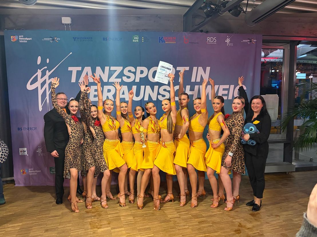 Das Turnier der ersten Bundesliga brachte wenig Überraschungen und eindeutige Wertungen mit sich. Mit allen Einsen gewann das A-Team des ausrichtenden Vereines (Braunschweiger TSC) und führt damit weiterhin mit einer makellosen Bilanz die Tabelle an. Rang drei ertanzte sich erneut das A-Team vom TSC Blau-Gold Nienburg und Platz sieben ging an das B-Team vom Nienburger Verein.