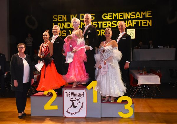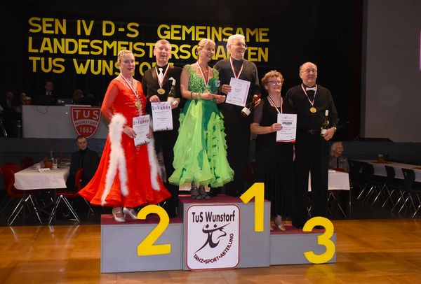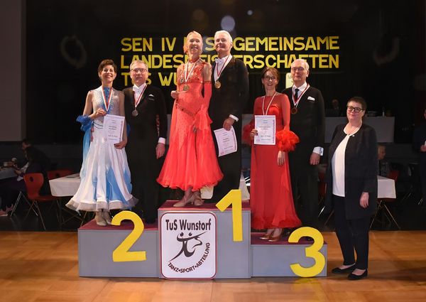 Am 1. März war die schöne Aula des Schulzentrums am Spalterhals in Barsinghausen wieder einmal Schauplatz eines tanzsportlichen Großereignisses: In Kooperation mit dem Niedersächsischen Tanzsportverband lud die Tanzsportabteilung des TuS Wunstorf alle Tanzbegeisterten ein, als Akteure auf der Parkettfläche oder als Zuschauer an deren Rand an den Gemeinsamen Landesmeisterschaften der Nordverbände für die Senioren-Altersgruppe IV teilzunehmen (ja, die Zeit der „Masters“ ist Geschichte, und nun heißen sie wieder in altehrwürdiger Tradition Senioren). Und so strömten die Fans unserer begeisternden Sportart bei herrlichem Frühlingswetter aus allen Teilen Norddeutschlands in Barsinghausen zusammen, um gemeinsam spannende und am Ende hoch spektakuläre Stunden im Zeichen des Tanzsports zu verbringen.
