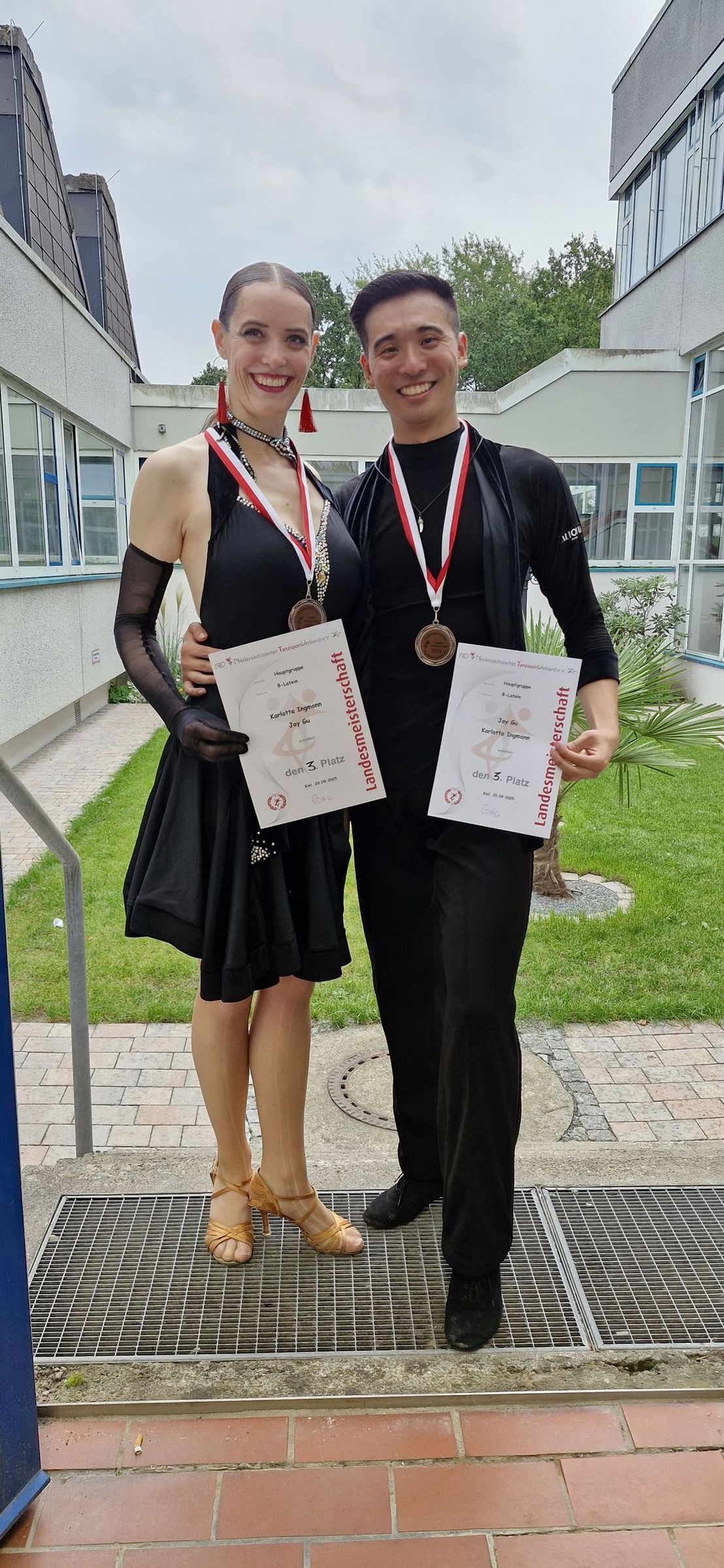 Platz drei und damit Landesmeister des NTV wurden Björn Sobotta und Freia Beermann (1. TSZ i. Turn-Klubb zu Hannover), die damit in die A-Klasse aufgestiegen sind. Platz sechs und damit Silber belegten das Jugendpaar Bennet Liebau und Greta Möhle (Blau-Weiss Buchholz); Platz 13 und den Bronzerang belegten Jay Gu / Karlotta Ingmann (Hannover 96 Tanzen).