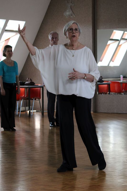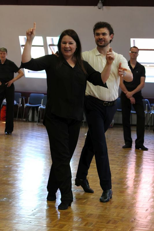 Während man den Satz „foot rhythm geht vor body rhythm“ zwanglos dem Lehrgangsthema „ Level of energy used for creativity“ zuordnen kann, ist dies bei der Frage, was hat der „Spaghettipunkt“ mit Führung und Dynamik zu tun, schon schwerer zu beantworten.