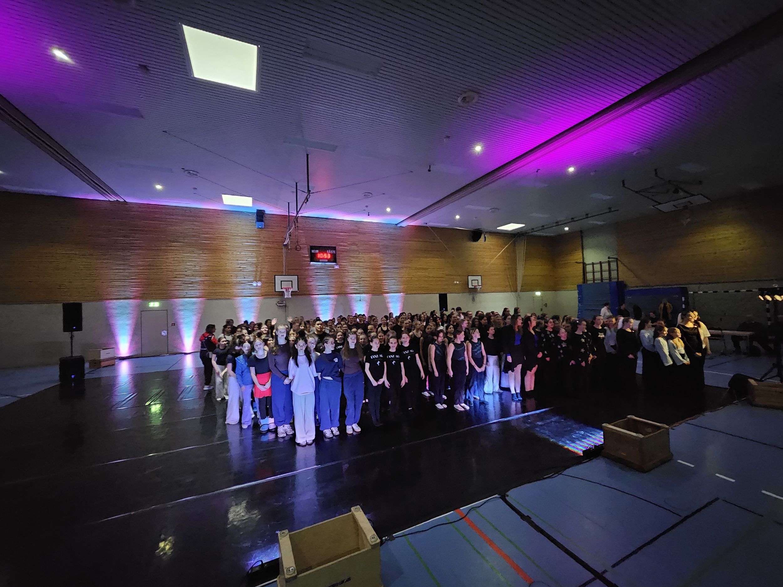 Die Sportfachgruppe der Albert-Einstein-Schule hatte die Halle wieder professionell vorbereitet, u.a. mit einem echten Tanzboden, den das Schauspielhaus Hannover wie schon im letzten Jahr zur Verfügung gestellt hat. Ein Musik- und Computerteam der Schule war für die Musik und die Beleuchtung verantwortlich. Diese große Unterstützung durch die Albert-Einstein-Schule hat einen reibungslosen Ablauf des Wettbewerbs gewährleistet.