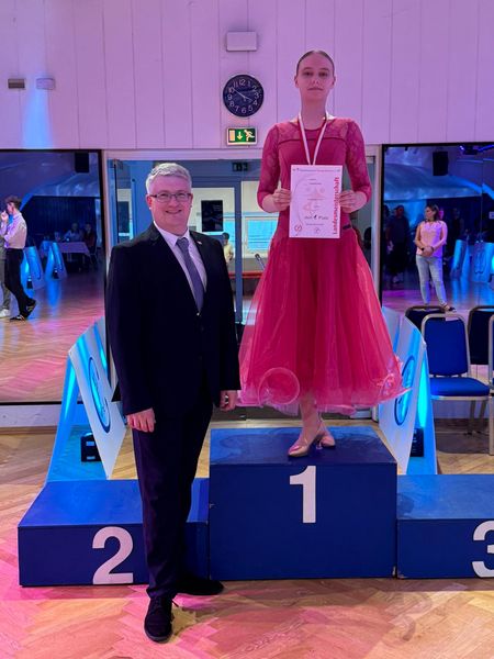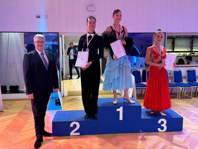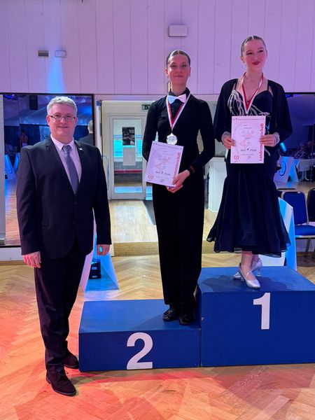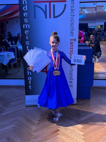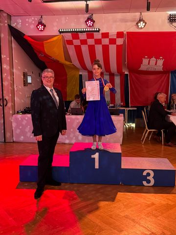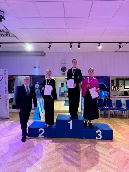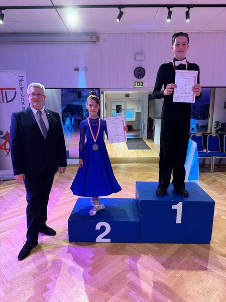 Franz Krieg (Tanzsportclub Phoenix Hannover) ging bei den Junioren I B an den Start und durfte nach einem spannenden Finale von NTV-Jugendwart David Kiefer die Goldmedaille entgegen nehmen. Einen überaus erfolgreichen Turniertag krönte Sofia Skida aus Oldenburg mit der Silbermedaillie und zahlreichen Einsen in der Wertung dieser Startklasse.