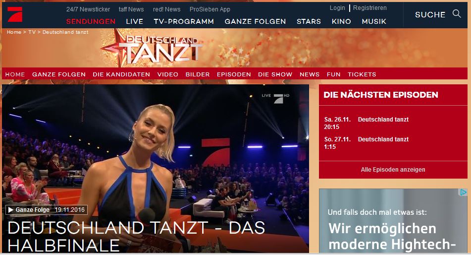 Das neue Pro7 Format "Deutschland tanzt" begeistert seit kurzem Tanzsportfans an den deutschen Bildschirmen. Am kommenden Samstag, dem 26. November 2016, wird PD-Tänzer und A-Wertungsrichter Domenik Herrmann mit der Profiturnerin Magdalena Brzeska an den Start gehen. Domenik befindet sich derzeit in Vorbereitung auf die Finalrunde, die am Samstag ab 20:15 Uhr bei Pro7 zu sehen sein wird.