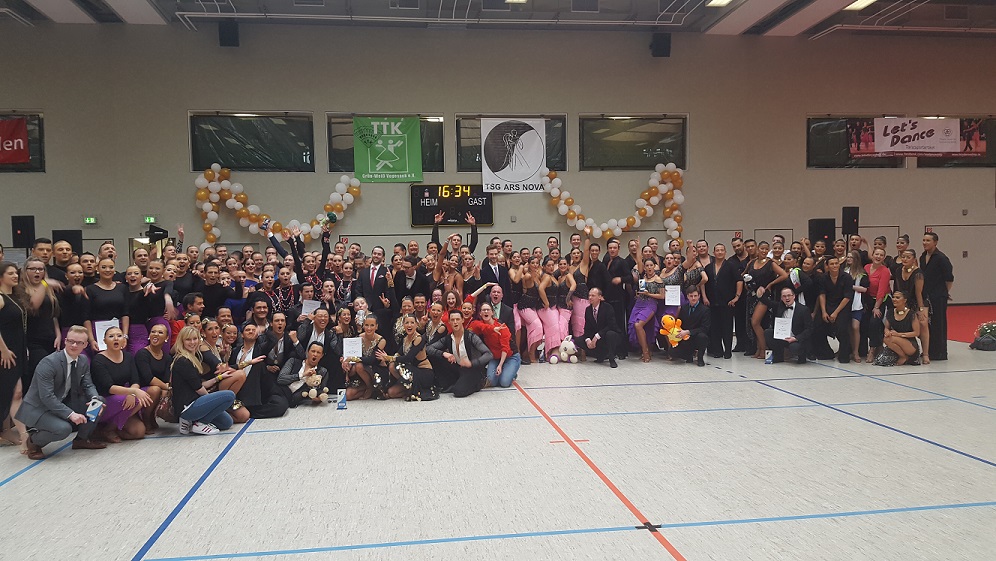 Die Landesliga Nord Gruppe A besteht insgesamt aus neun Teams, wobei vier dieser Formationen aus Niedersachsen stammen. Die Vorrunde eröffnete die Heimmannschaft mit ihrer Choreografie "Counting Stars". Das Team ARS Nova (B) zeigte zwar gute technische Ansätze , jedoch schlich sich die ein oder andere Ungenauigkeit im Vorrundendurchgang ein , sodass der Gastgeber in der Platzierungsrunde gegen die Konkurrenz aus Lübeck und (Blau/Gold) Nienburg B antreten musste. Im weiteren Turnierverlauf präsentierte sich das sehr junge Nachwuchsteam aus Buchholz (D) mit ihrer Choreografie mit Musiktiteln des Popsängers "Bruno Mars" . Die sieben Paare des Bundesligaunterbaus konnten die Wertungsrichter mit ihren meist genauen Bildwechseln & solider Basic überzeugen. Abgeklärt und sehr erfahren zeigte sich das A Team des TSZ i. TK z. Hannover mit ihrer Darbietung von "James Band" ,einzig die Highlights hätten während des gesamten Turniers präziser ausgeführt werden können. Das Team aus Hannover gab während der gesamten fünf Ligaturniere insgesamt nur zweimal eine Eins an die Konkurrenz ab und gewann somit jedes Turnier der Landesliga Gruppe A souverän.